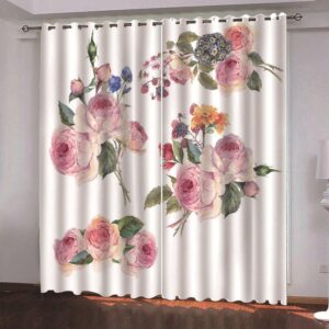 Pink Roses Curtains 3D Floral Themed Curtains Drapes 2 Panel Set for Living Room Bedroom Decoration Window