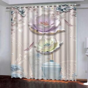 Decoration Dreamy Flowers 3D Printed 2 Panels Custom Polyester Curtain