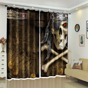 3D Terrible Skull Printed Thick Polyester 2 Panels Blackout Living Room Curtain