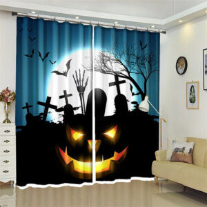 Cartoon Pumpkin And Tomb 3D Polyester Halloween Scene Curtain for Kids Room/Living Room