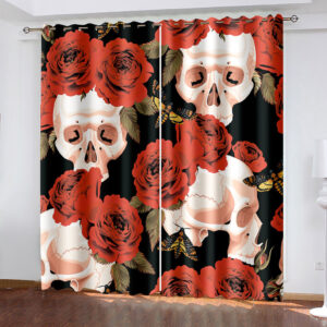 Skull in Red Rose 3D Printed Curtains Blackout Decoration Window Shading Curtain Custom 2 Panels Drapes Polyester