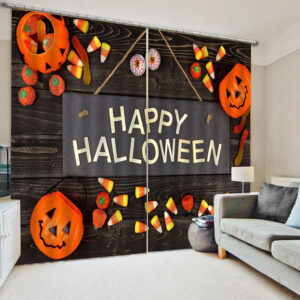 Happy Halloween 3D Printed Blackout Decorative Window Curtains Custom 2 Panels Drapes No Pilling No Fading No off-lining