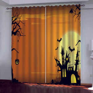 Yellow 3D Happy Halloween Printed Blackout Decoration Window Curtains for Living Room and Bedroom Custom 2 Panels Drapes No Pilling No Fading No off-lining