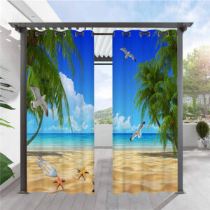 Modern 3D Outdoor Curtains Sea View Beach Grommet Top Cabana Curtain Waterproof Sun-proof Heat-insulating Polyester 2 Panels