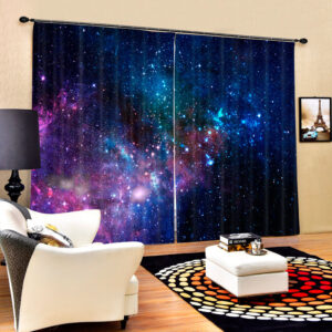 3D Gorgeous Dark Blue Galaxy Printed Polyester Blackout Custom 2 Panels Curtain