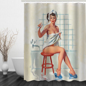 3D Sexy Bathing Girl Printed Polyester Beige Shower Curtain
