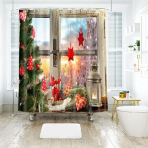 Christmas Ornaments by the Window Bathroom Shower Curtain