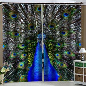 3D Print Peacock Window Curtains Polyester Modern Blue Blackout Custom 2 Panels Drapes for Living Room Bedroom No Pilling No Fading No off-lining