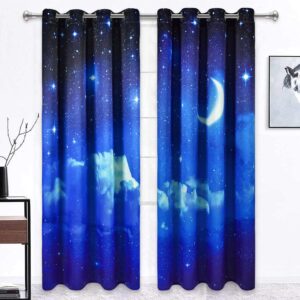 3D Printed Living Room Scenery Curtains Moon Night Starry Sky Polyester 2 Panels Custom Darkening Blackout No Pilling No Fading No off-lining