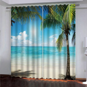 3D Sunny Day Seaside Beach and Coconut Palm Printed Decorative Custom Scenery Curtains