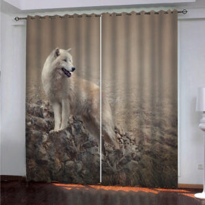 A Wolf On the Rock 3D Painted Decorative Blackout Custom Animal Print Curtains