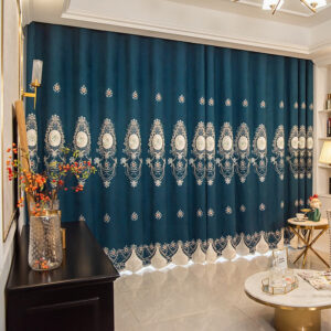Chenille Elegant Blackout Curtains High Quality Blue European Relief Embroidery Window Curtains Sheer for Living Room Bedroom Custom Set of 2 Panels