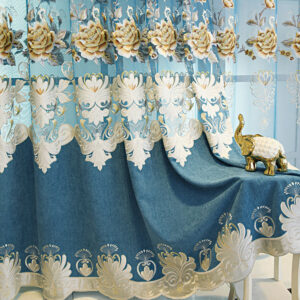 Chenille High-end Blackout Curtains European Blue Hollowed-out Floral Embroidery Window Curtains and Sheer for Living Room Bedroom Decor Custom 2 Panels