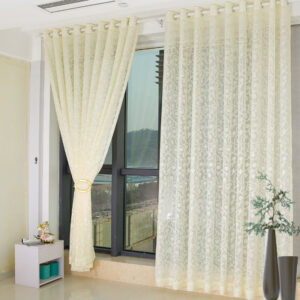 Modern Fashion Beige Floral Living Custom Sheer Curtain