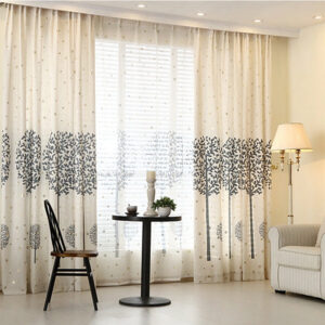 Concise Grey Tree Printing Shading Cloth & Sheer Curtain Sets