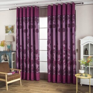 Decoration Polyester Cotton Deep Purple Floral Sheer and Shading Cloth Curtain Set