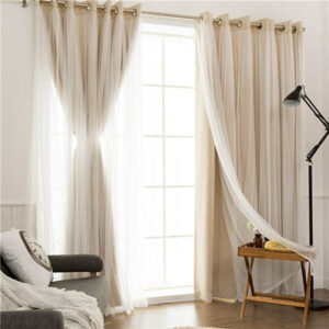 Decorative and Blackout Korean Style Solid Color Sheer and Lining Curtain Sets