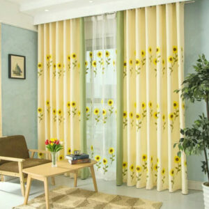 Decoration Polyester Embroidery Bright Sunflowers Sweet Style Sheer Lining Curtain Set