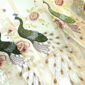 Elegant and Modern Embroidered Peacocks 2 Panels Living Room Sheer Curtain