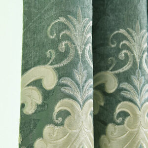 Noble Luxuriant Blue Green Chenille Embroidered Blackout Custom Grommet Curtains and Sheer