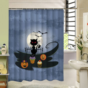 Somber Black Cat and Pumpkin Lanterns at Night Halloween Poster 3D Printing Shower Curtain