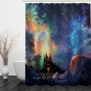 3D Halloween Galaxy Printed Polyester Waterproof Antibacterial and Eco-friendly Shower Curtain