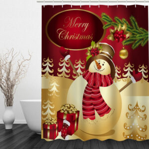 Cheerful Snowman Printing Christmas Theme Bathroom 3D Shower Curtain
