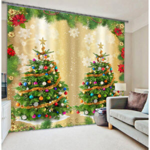 3D Wonderful Christmas Trees Printed Polyester Modern Style Blackout Custom Christmas Curtain