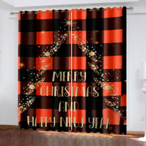 3D Wonderful Christmas Red and BlackTartan Printed Curtains Polyester Modern Style Blackout Custom Christmas Curtains