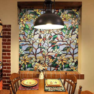 Floral Window Film Stained Glass Self Static Cling for Home