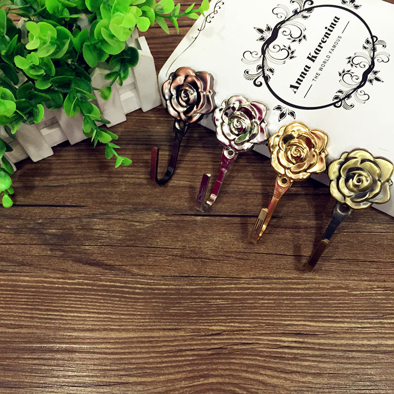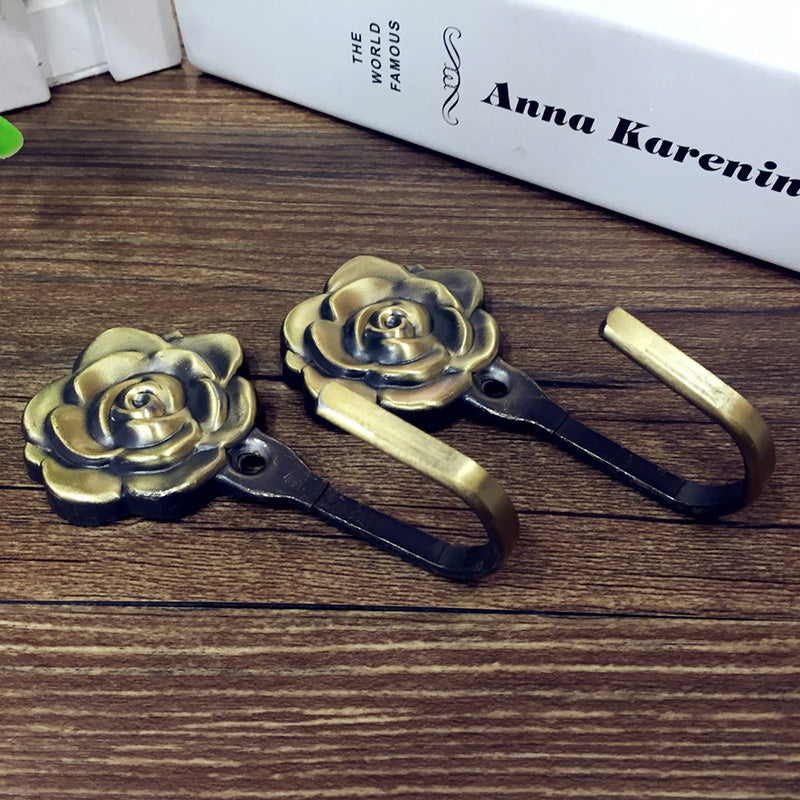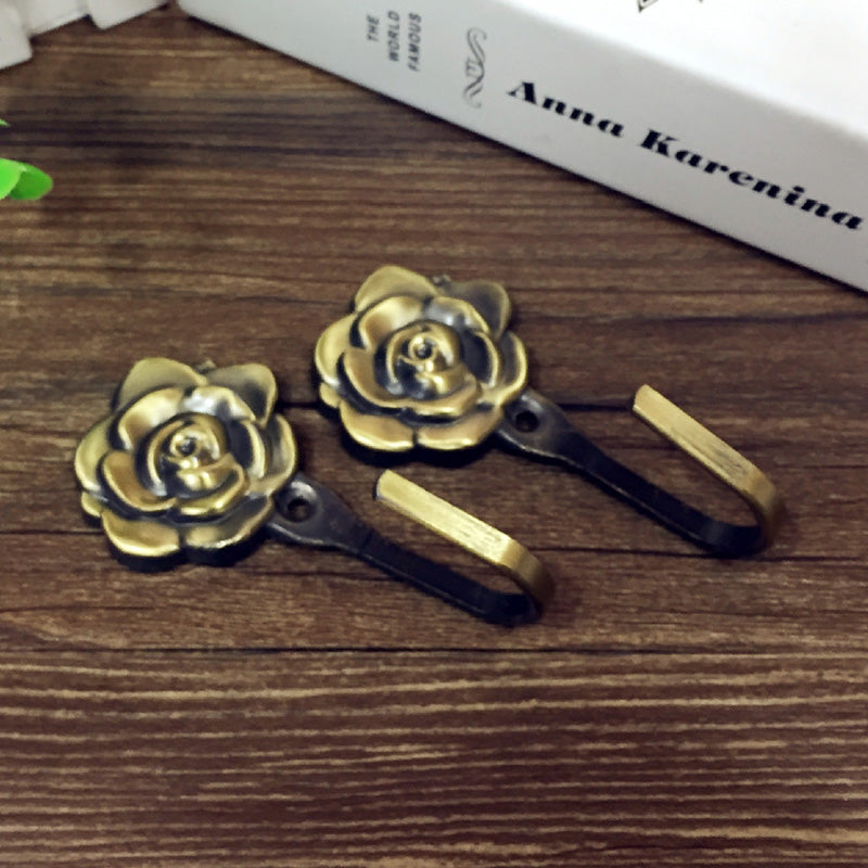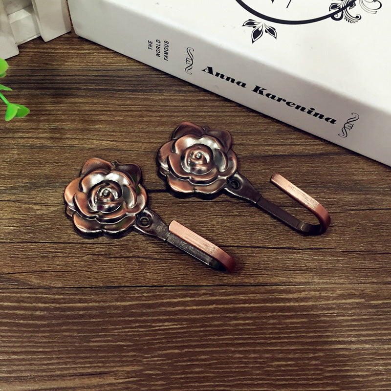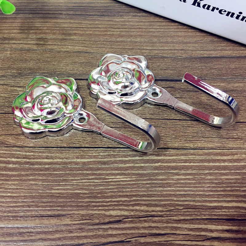 1 Pair Rose Curtain Hooks Wall Hook Door Hook No Rusting with Plating Surface