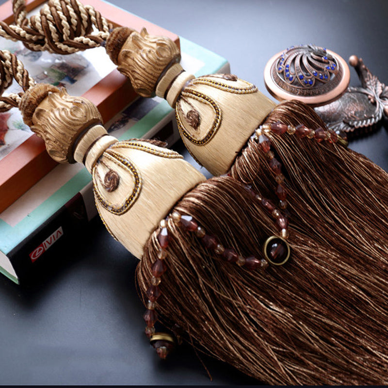 1 Pair Tassel Curtain Tiebacks Rope Braided Holdbacks for Bedroom