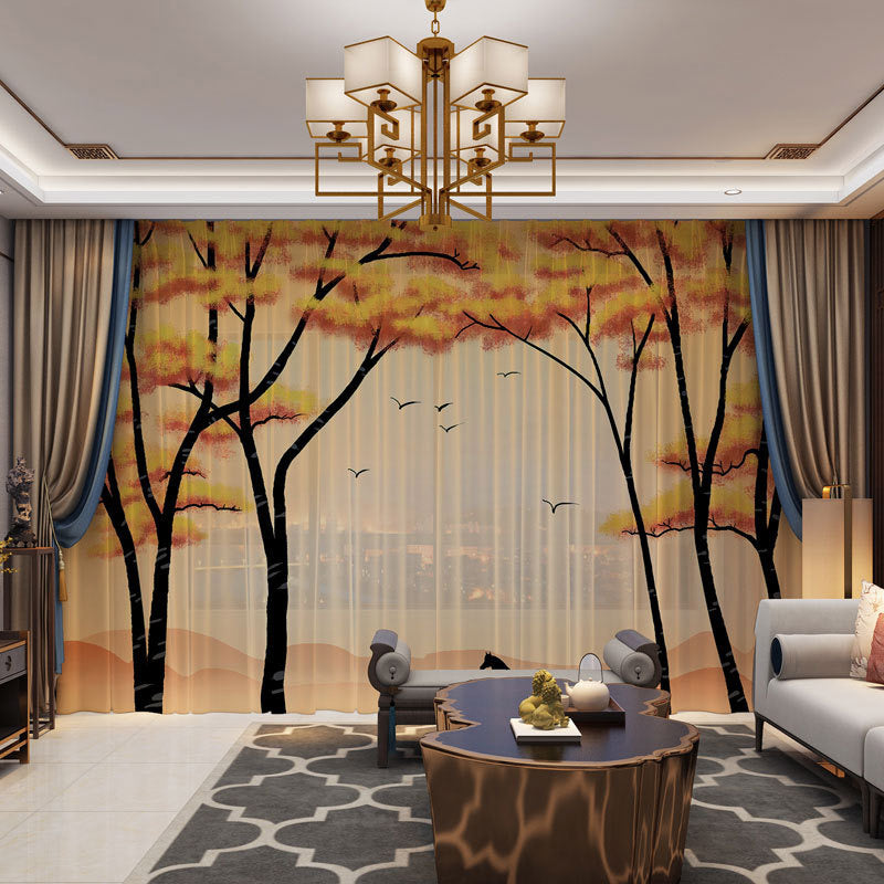 3D Autumn Dusk and Flying Birds Printed 2 Panels Custom Sheer