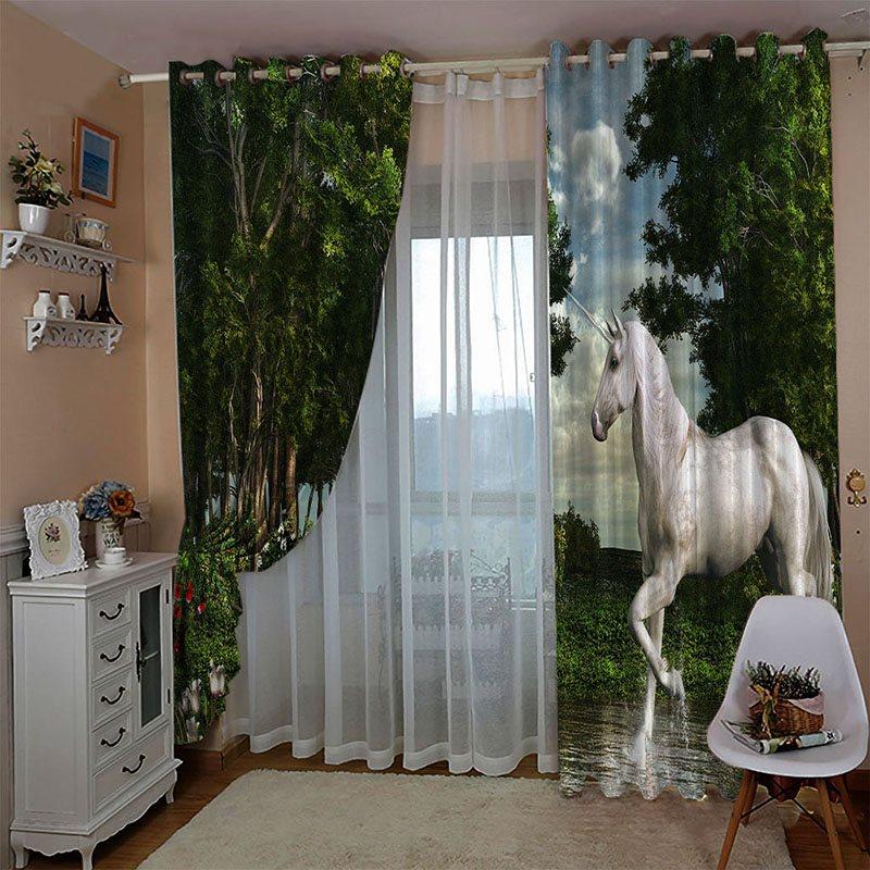 3D Blackout Curtains Horse in Forest Window Treatments Animal and Plant Print Curtains Panels for Living Room Bedroom Window Drapes 2 Panels Set Home Decorations