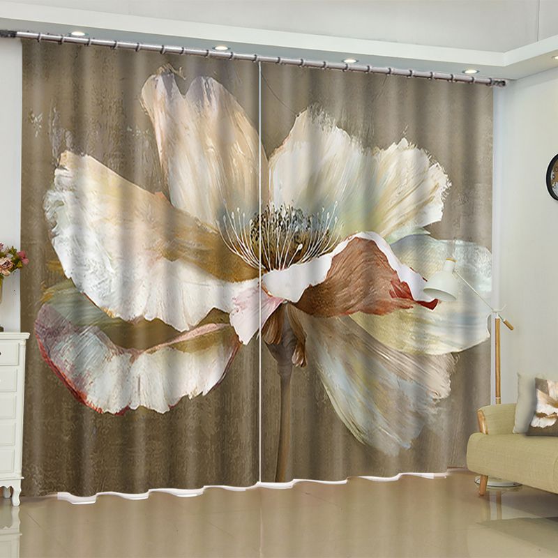 3D Ink Painting White Peony Printed 2 Pieces Custom Blackout Living Room Curtain