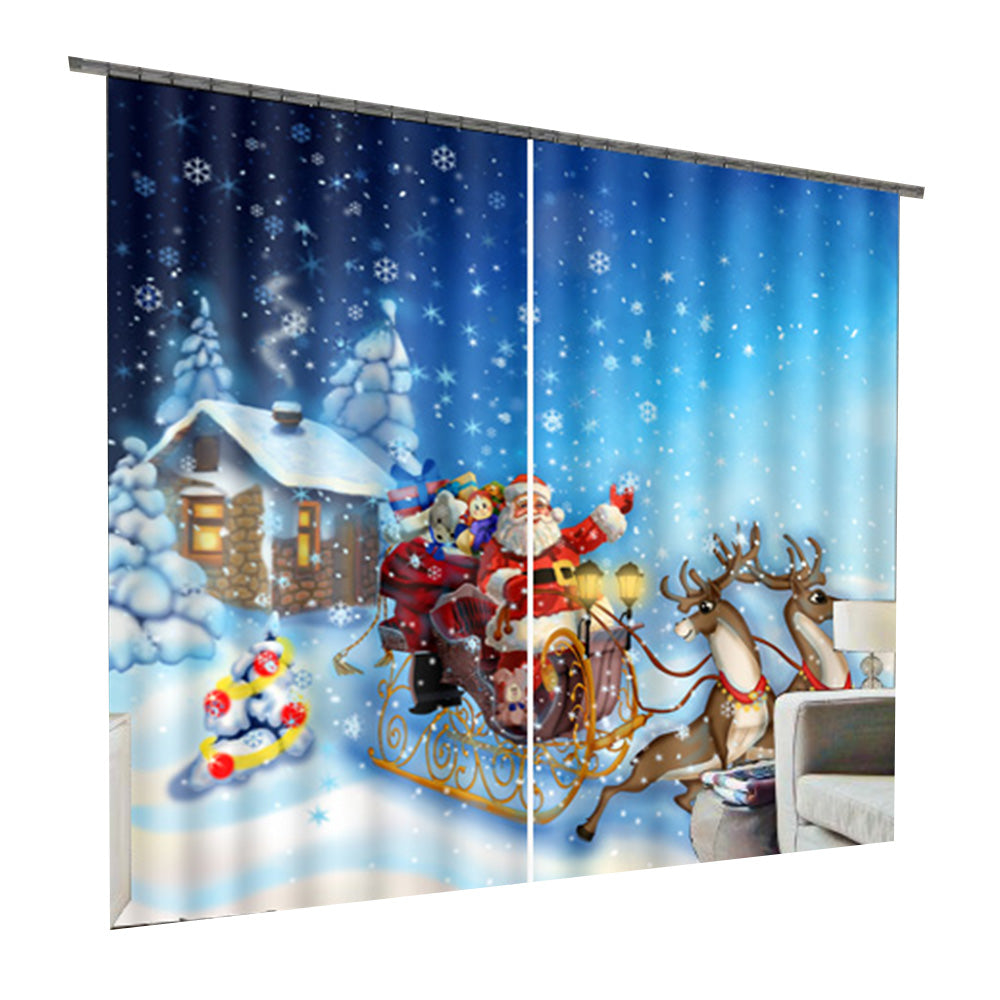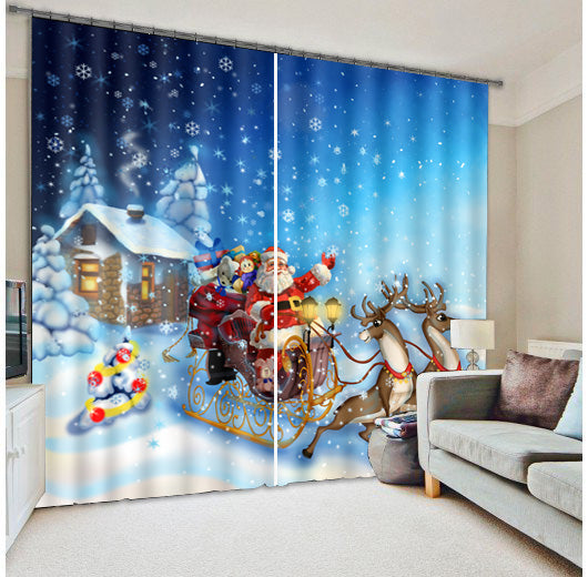 On the picture of curtain , a lovely Santa Claus send gifts to kids in white snow, which is full of joy and laughter that can brings more pleasures to you when you install it on your living room, bedroom, study and balcony. This curtain also features blackout, dusty-proof and water-proof. By making with high quality polyester materials and skillful process techniques, it can be used for a long time and easy to install to wash without bed smell.