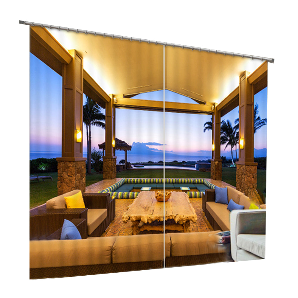 3D Luxurious Open-air Pavilion Printed Polyester Decoration and Blackout 2 Panels Custom Curtain