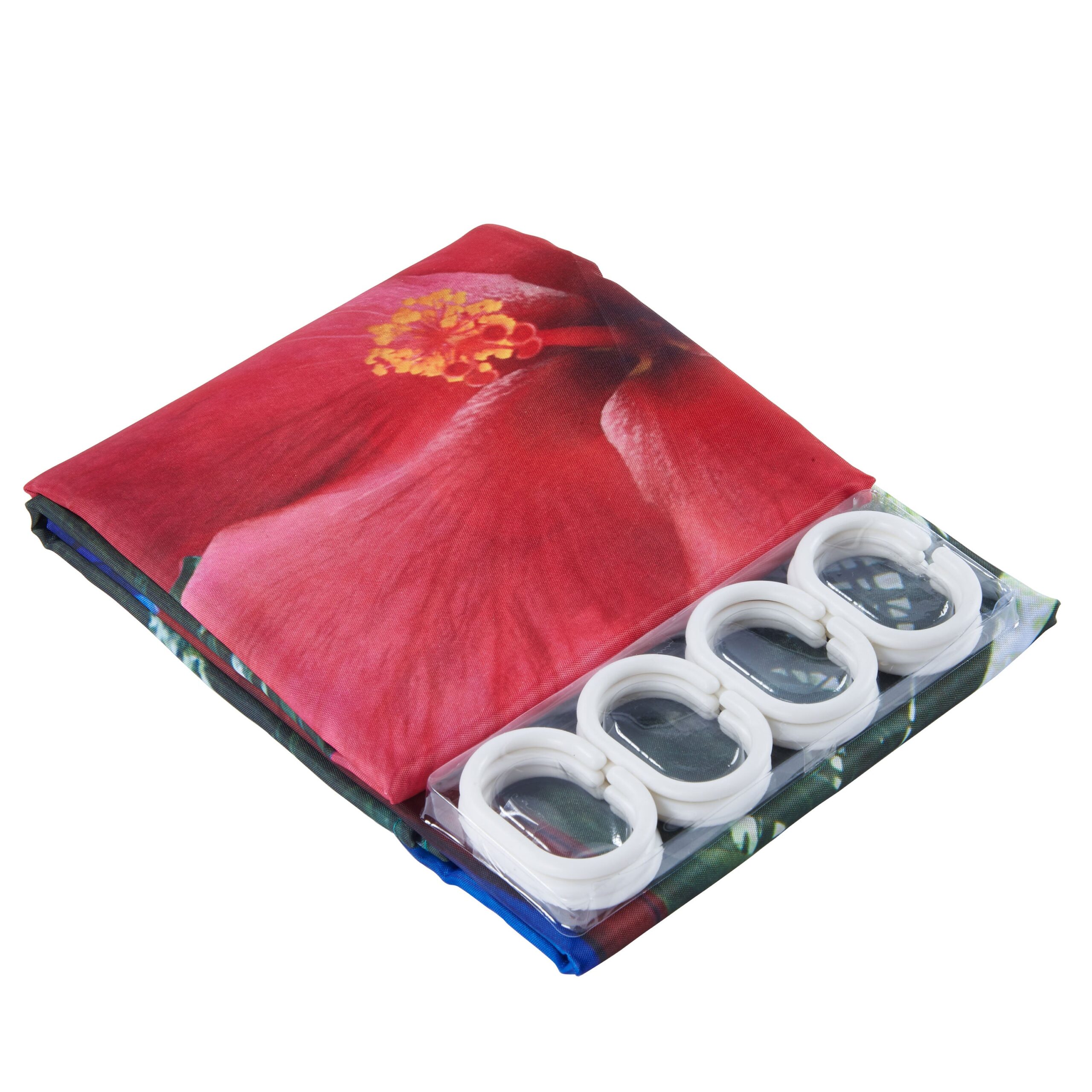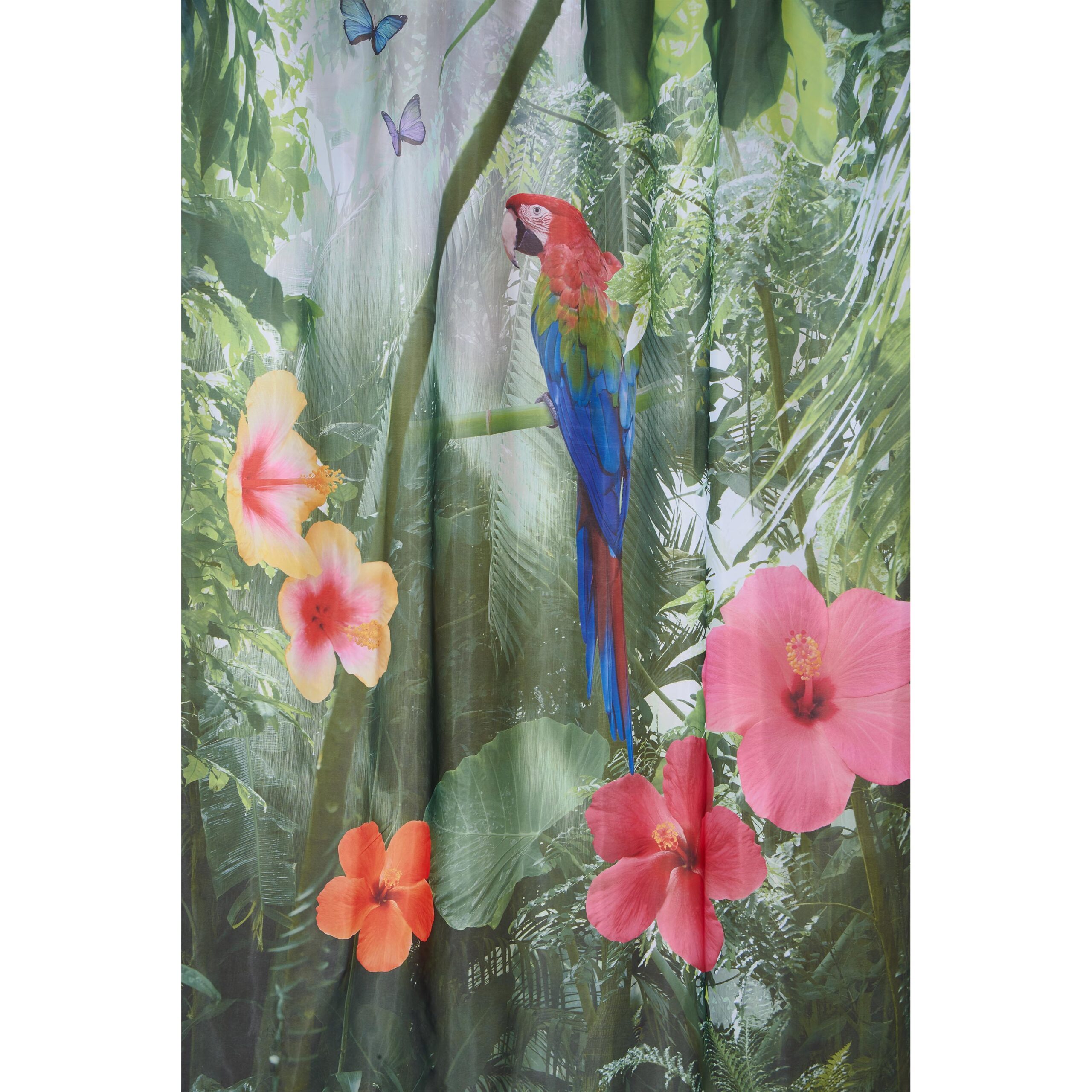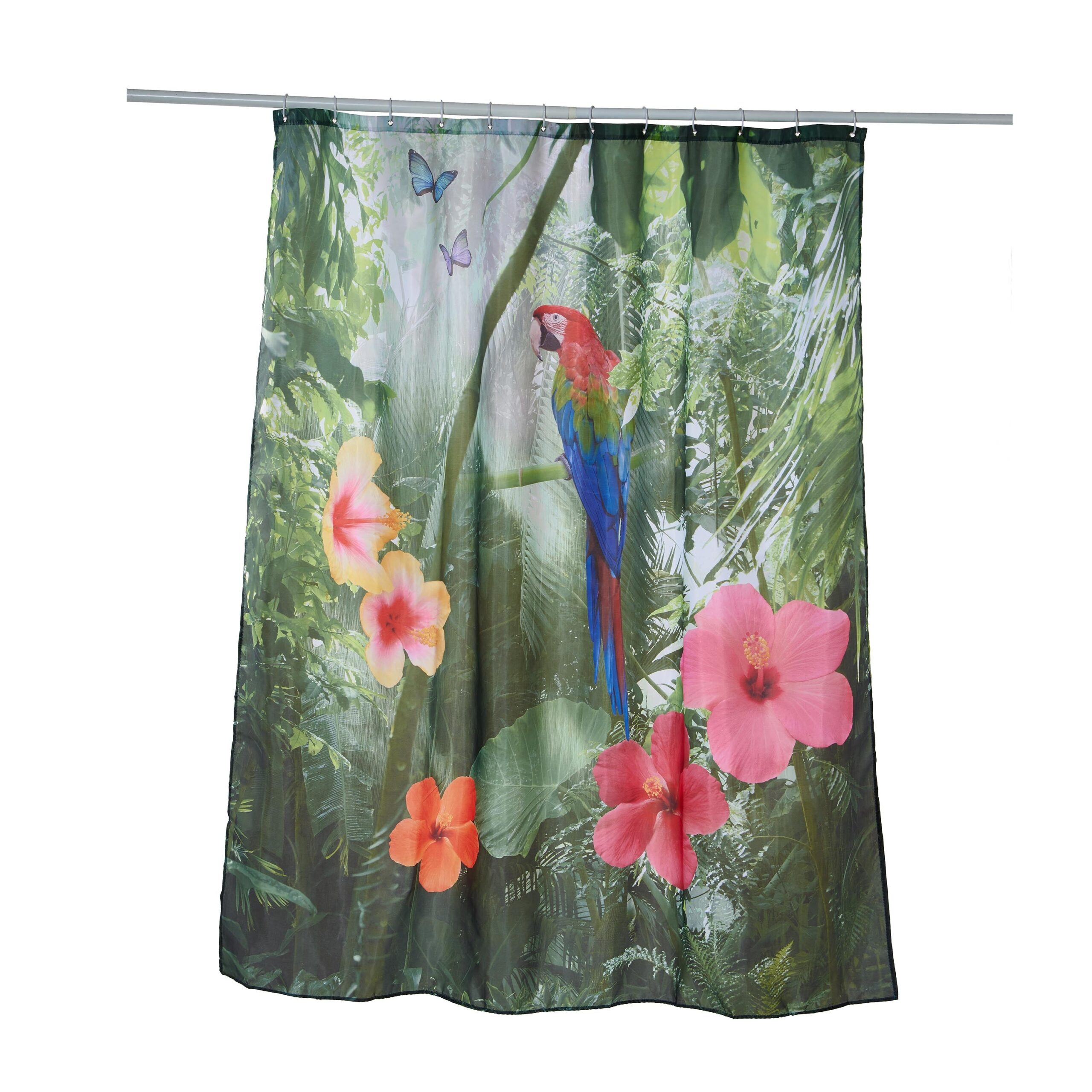 Instantly refresh your bathroom with the vivid parrot and forest printed 3D shower curtain. Featuring a colored parrot design, this polyester shower curtain will brighten up your bathroom setting.