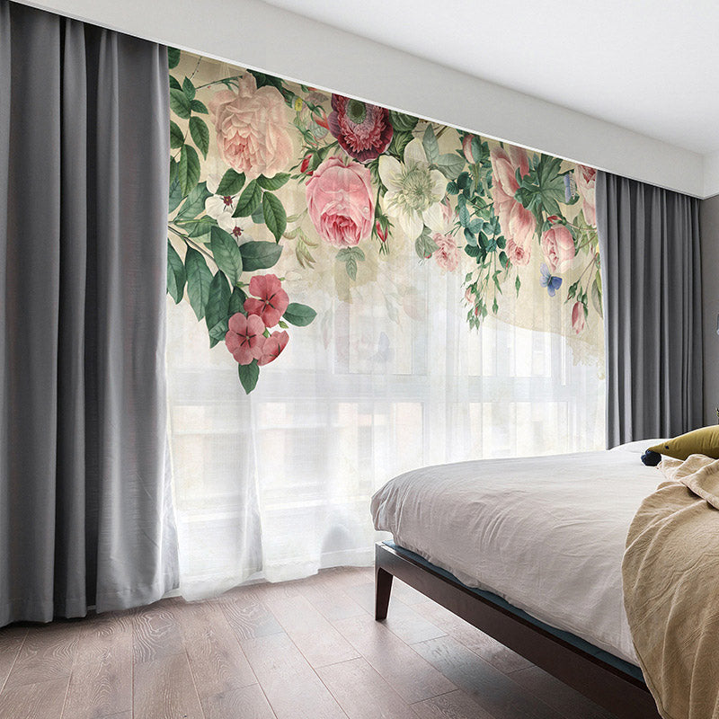 3D Pink Floral Romantic Style Printed 2 Panels Custom Sheer