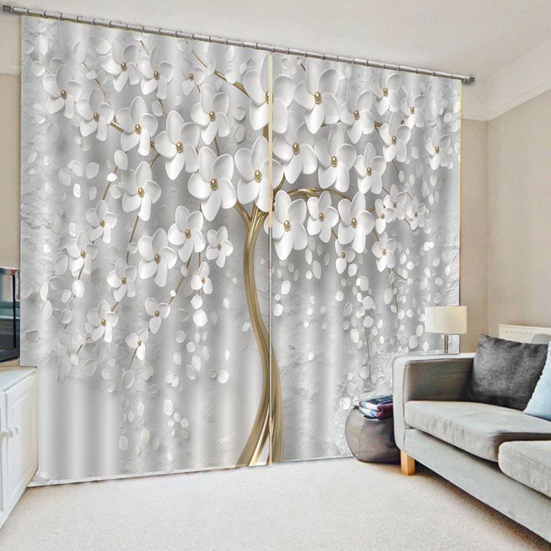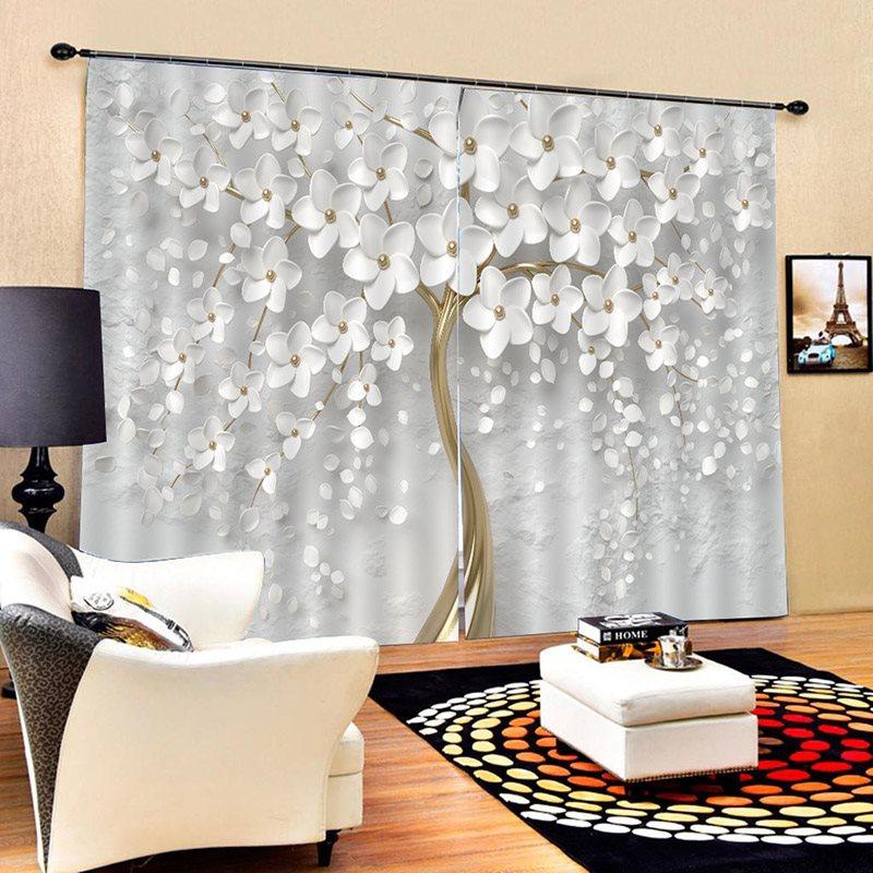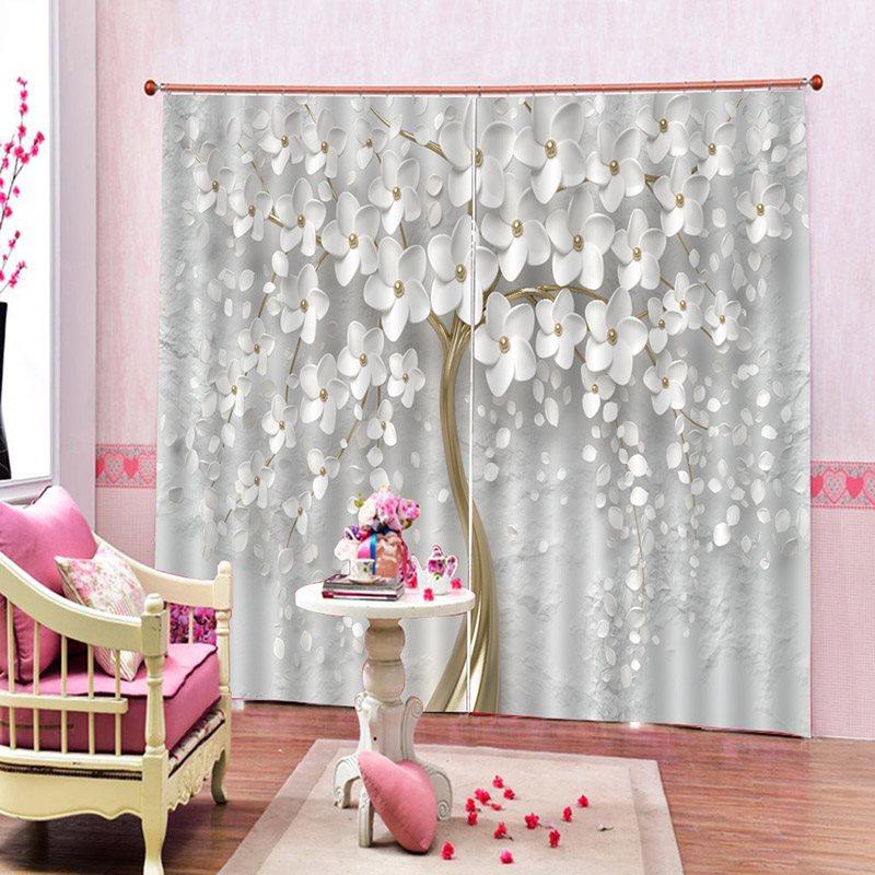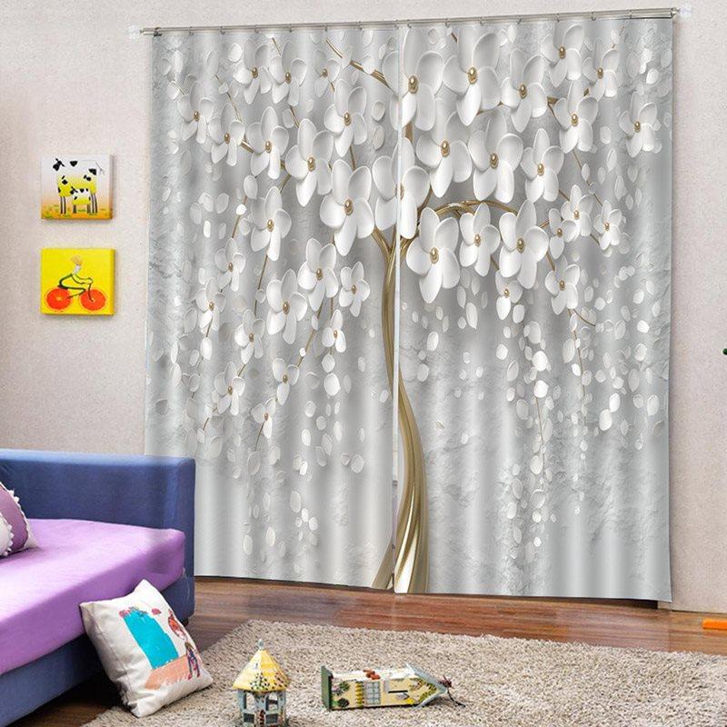 3D Print Blackout Curtains Creative White Flower Tree 2 Panels Drapes for Living Room Bedroom Decoration No Pilling No Fading No off-lining Polyester