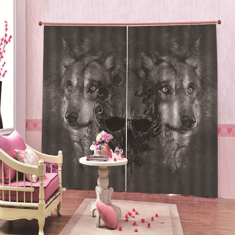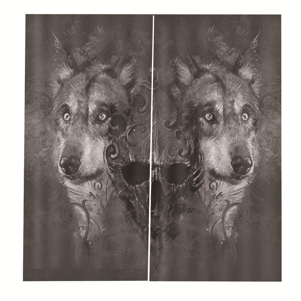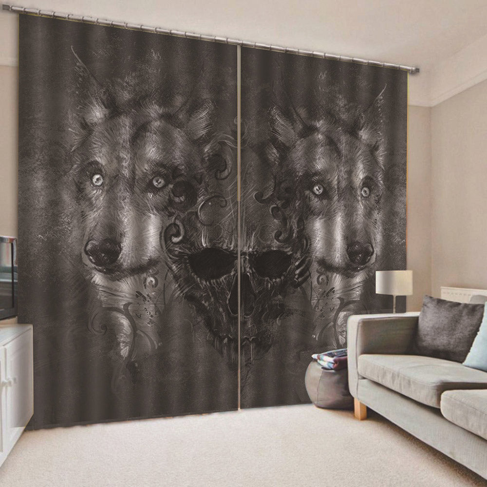 3D Print Wolf and Skull Curtains Modern Blackout Curtain Custom 2 Panels Drapes for Living Room Bedroom No Pilling No Fading No off-lining