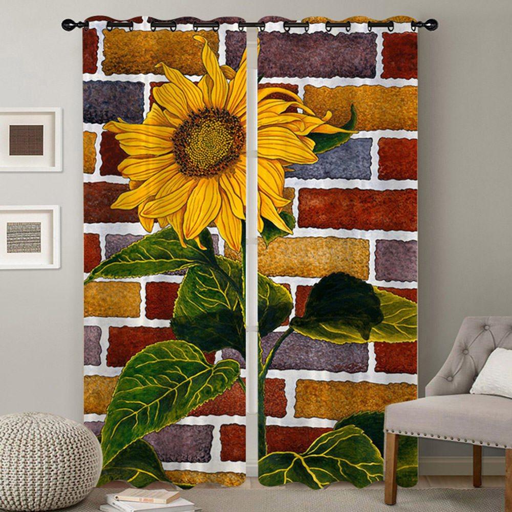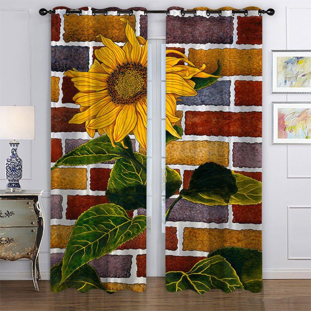 3D Printed Blackout Curtains Sunflower Wall Pattern 2 Panels Drapes for Living Room Bedroom Decoration No Pilling No Fading No off-lining Polyester