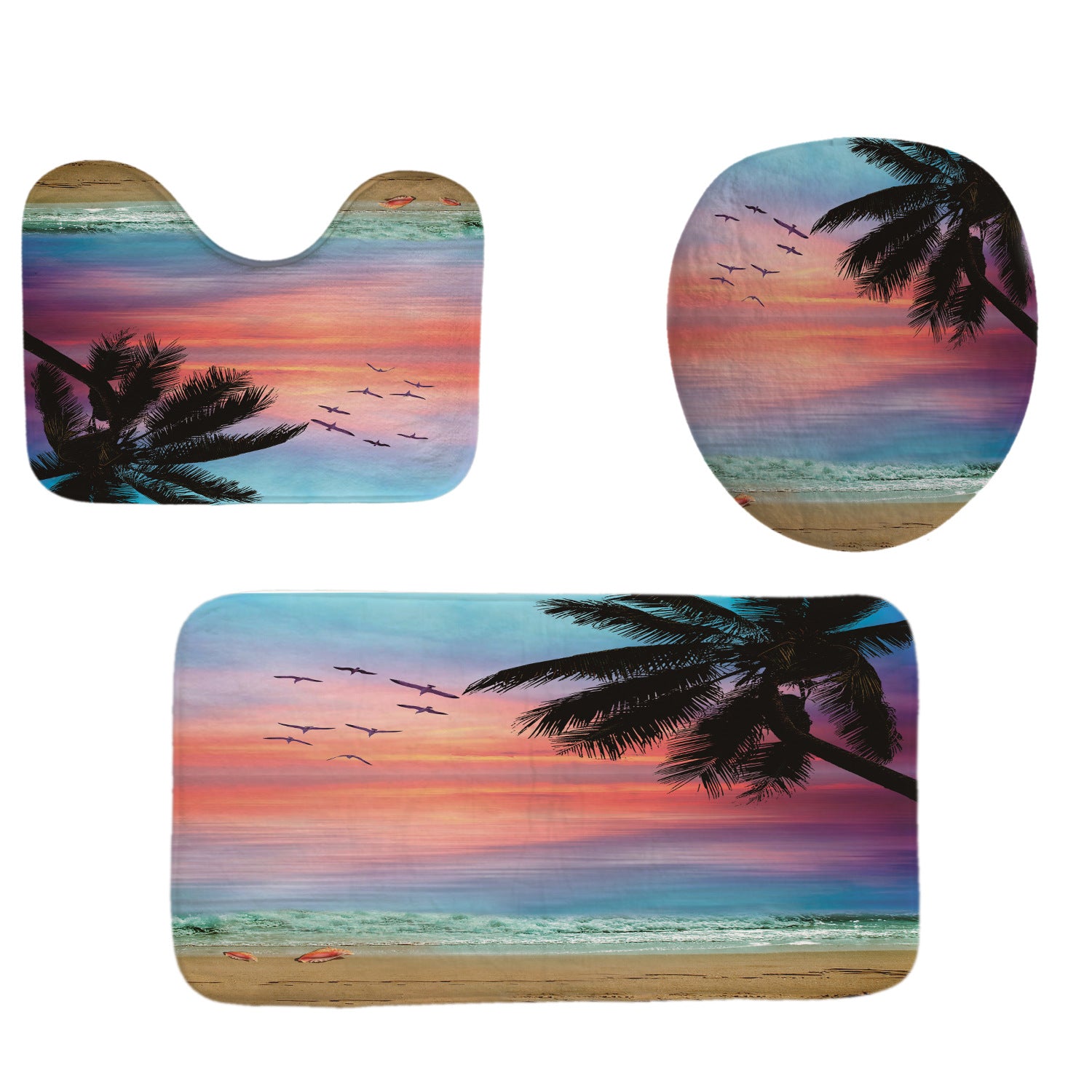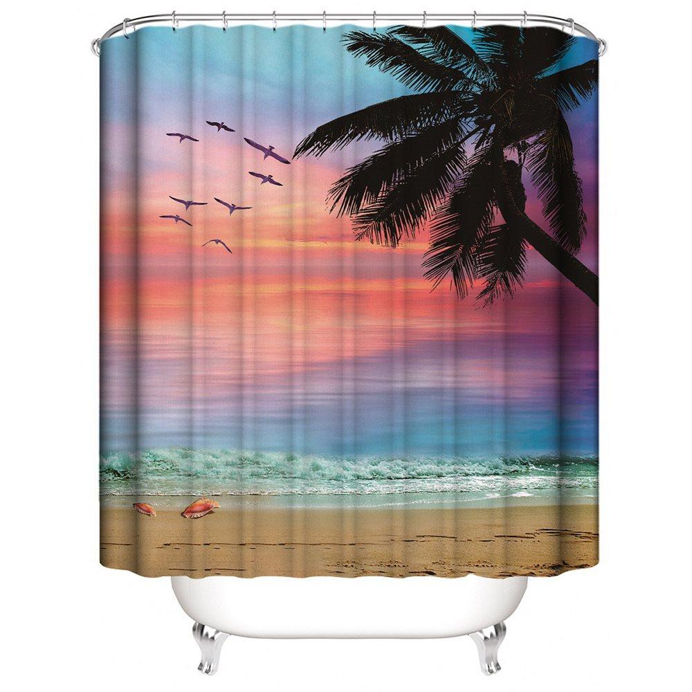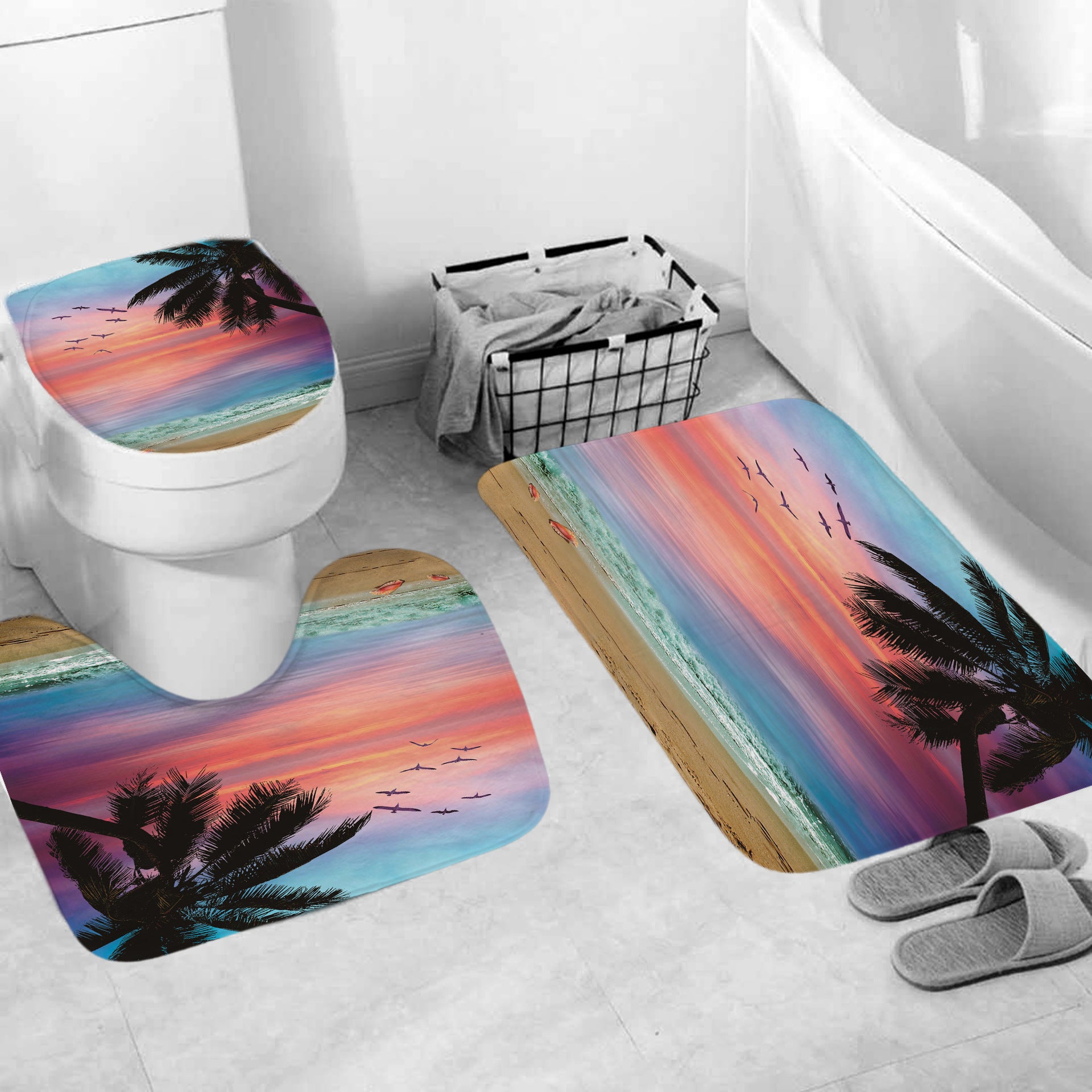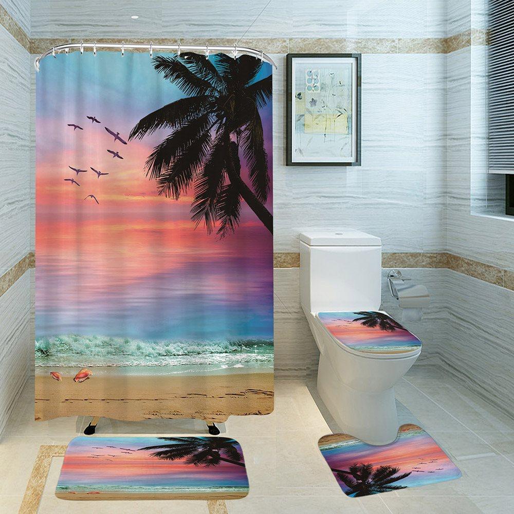 3D Printed Coast Sunset Palm Landscape Shower Curtain Set Bathroom Partition Curtain Durable Waterproof Mildew Proof Polyester