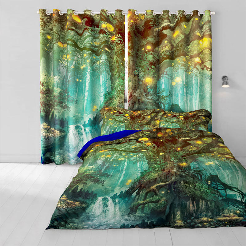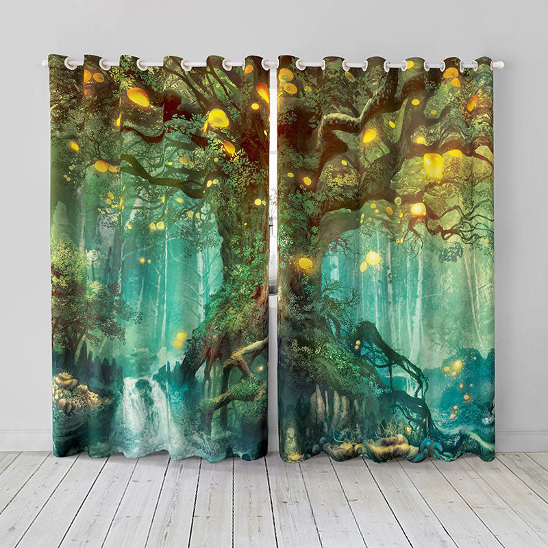 3D Printed Window Curtains Fairy Fantasy Large Tree Decorative Blackout Custom 2 Panels Drapes No Pilling No Fading No off-lining