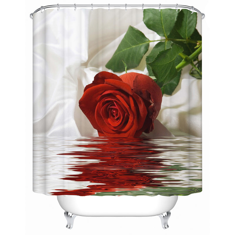 3D Red Rose in Water Printed Polyester Bathroom Shower Curtain