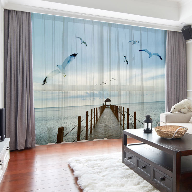 3D Sea gulls Blue Sky Sea Corridor Printed 2 Panels Custom Sheer