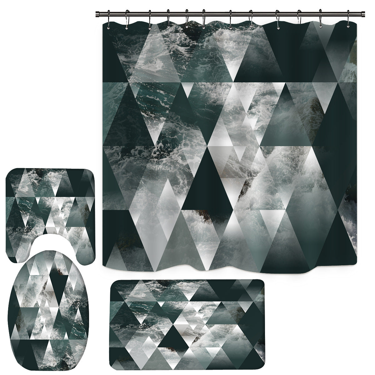 Be the first to review “3D Shower Curtain Gray Black Triangle and Waves Pattern Bathroom Partition Curtain Set Durable Waterproof Mildew Proof Polyester”