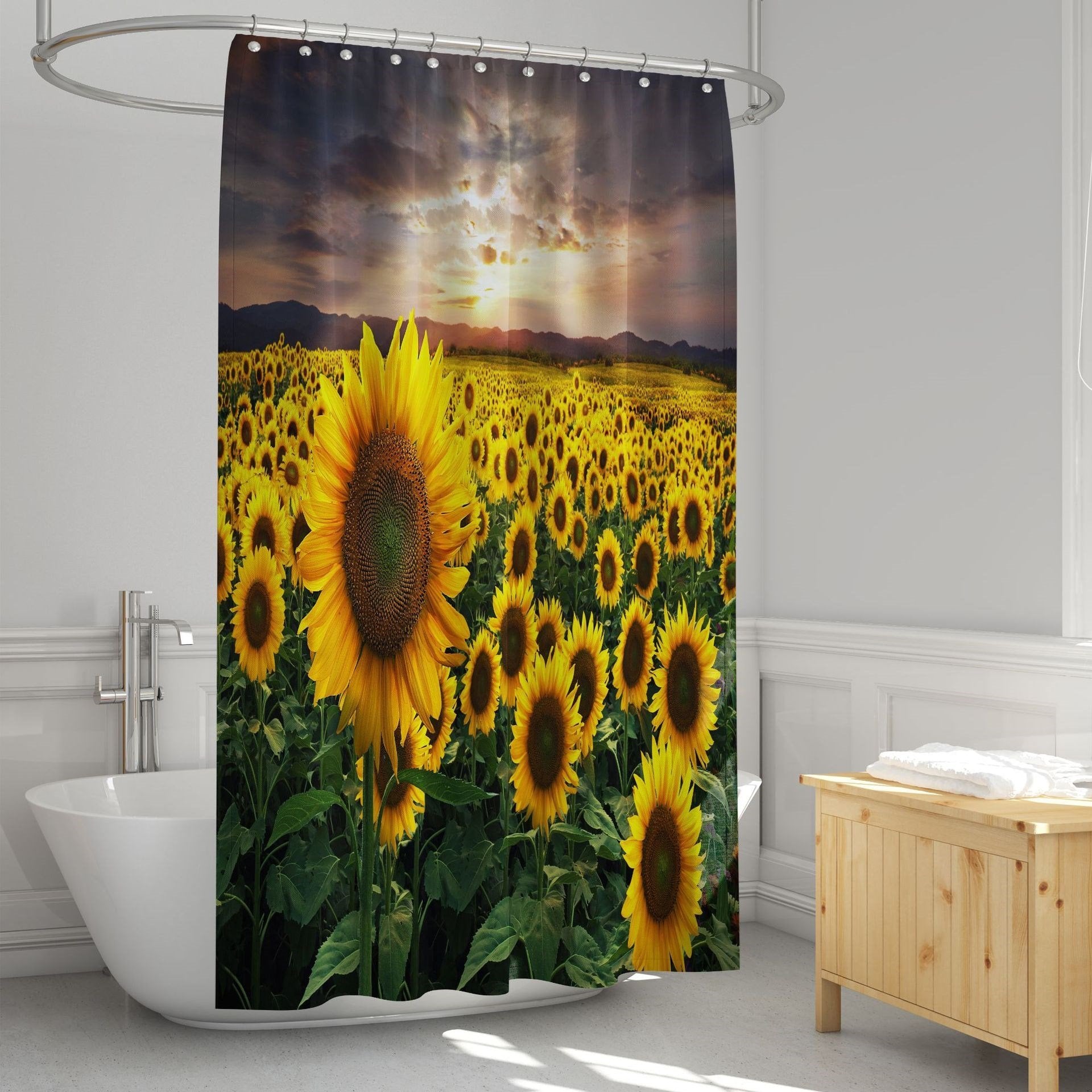 3D Shower Curtain Sunflowers Pattern Bathroom Partition Curtain Set Durable Waterproof Mildew Proof Polyester