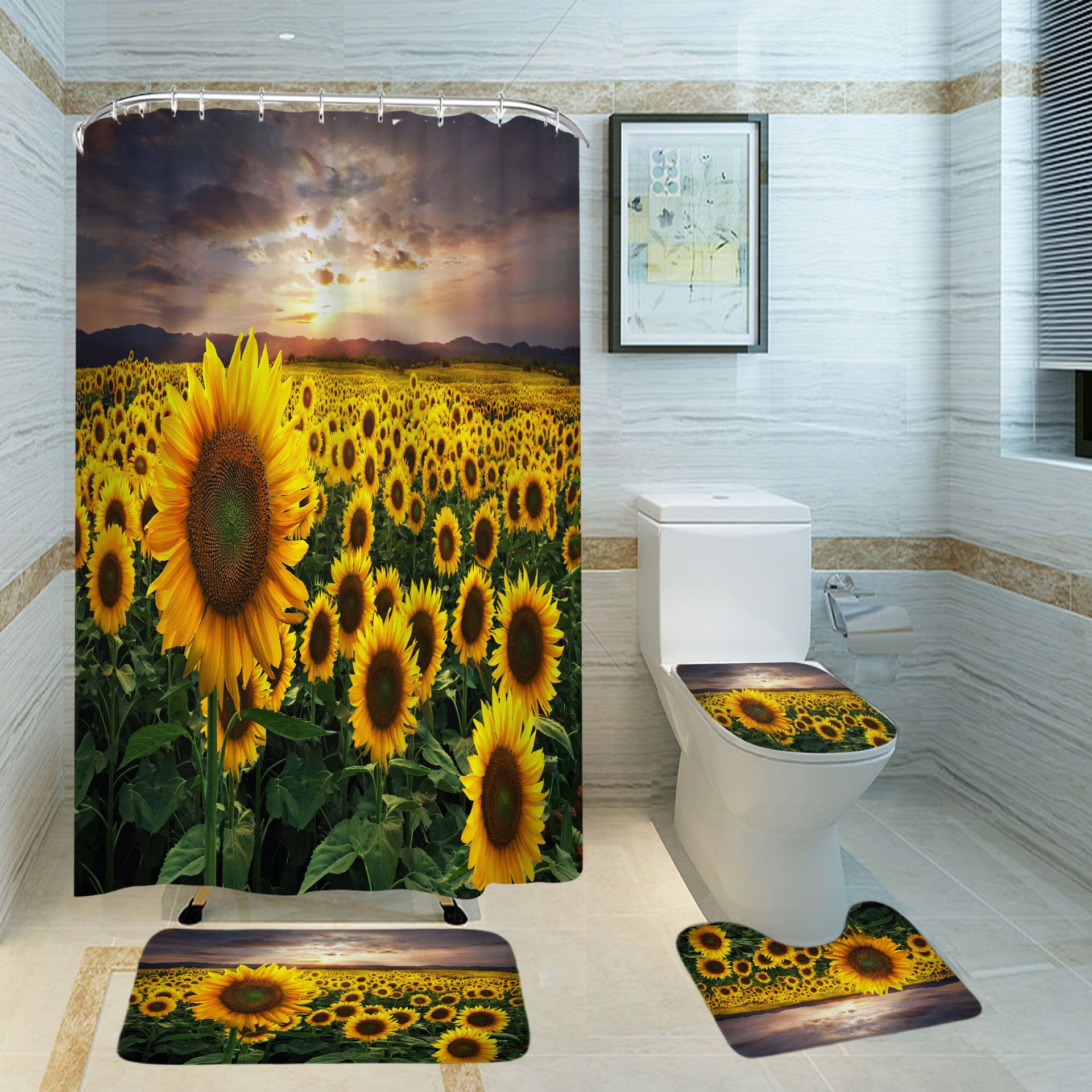 Be the first to review “3D Shower Curtain Sunflowers Pattern Bathroom Partition Curtain Set Durable Waterproof Mildew Proof Polyester”