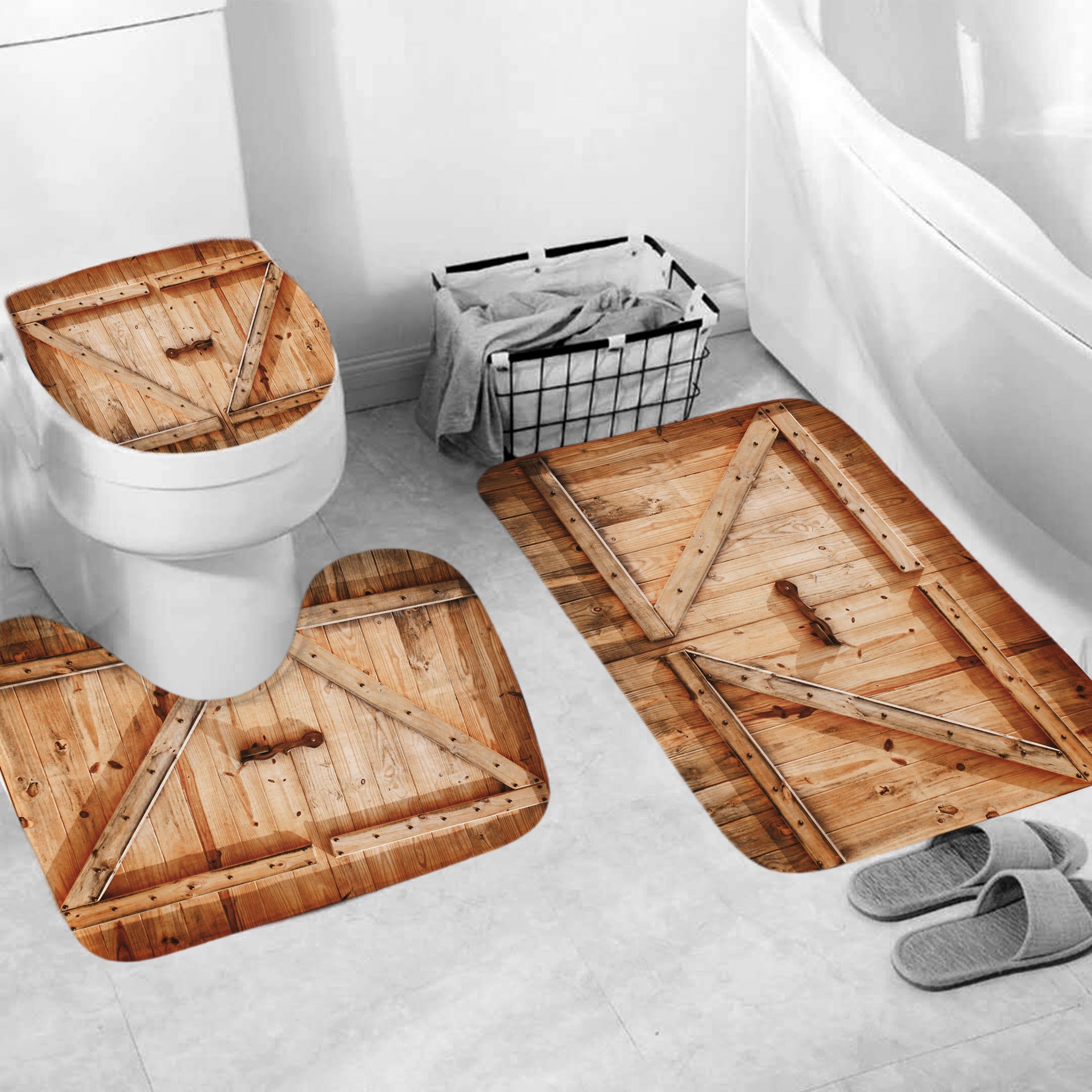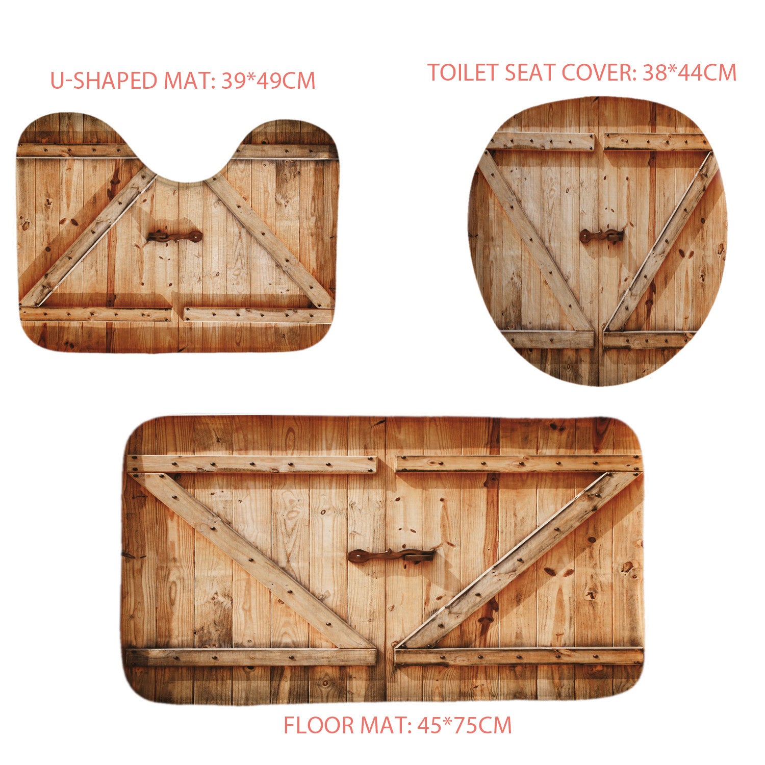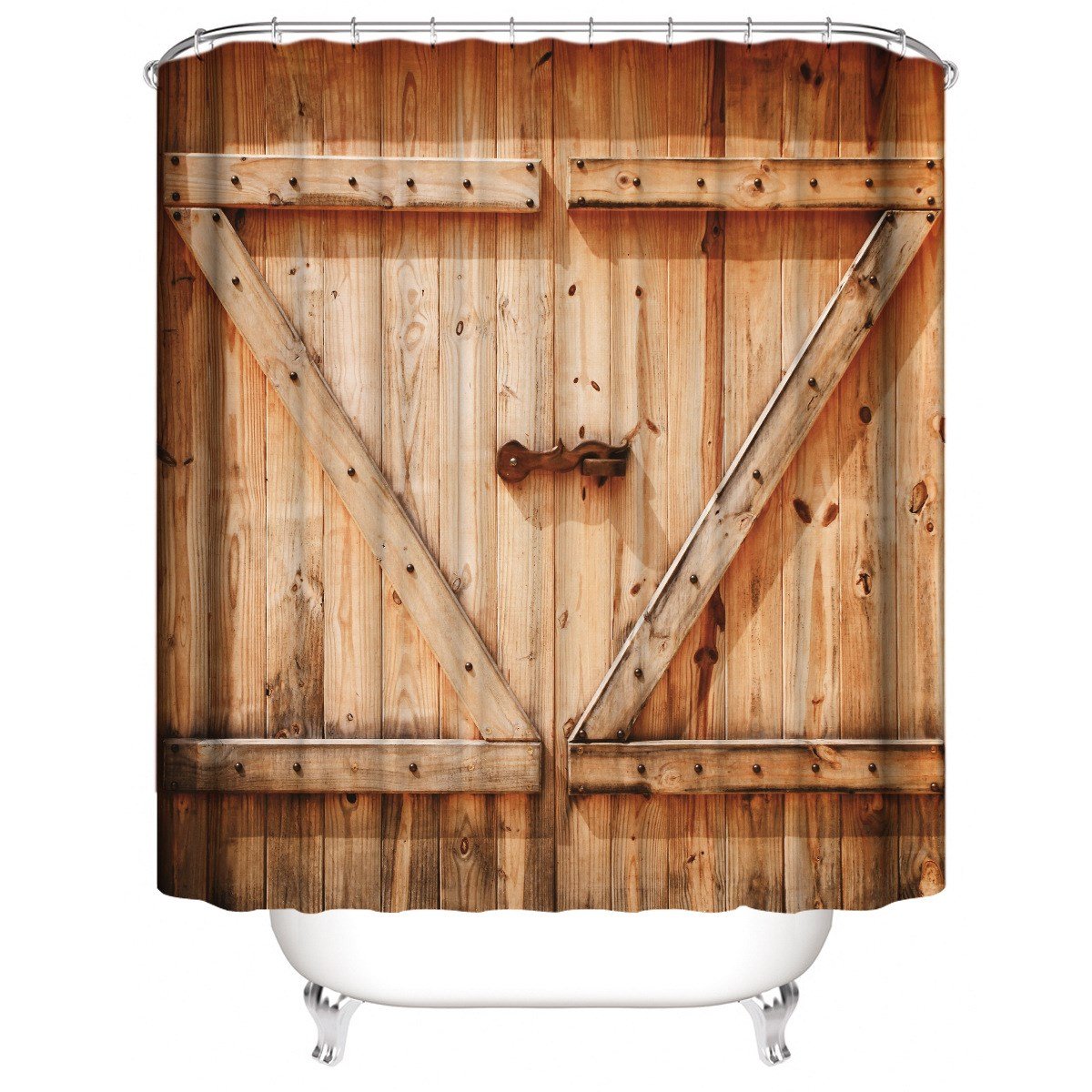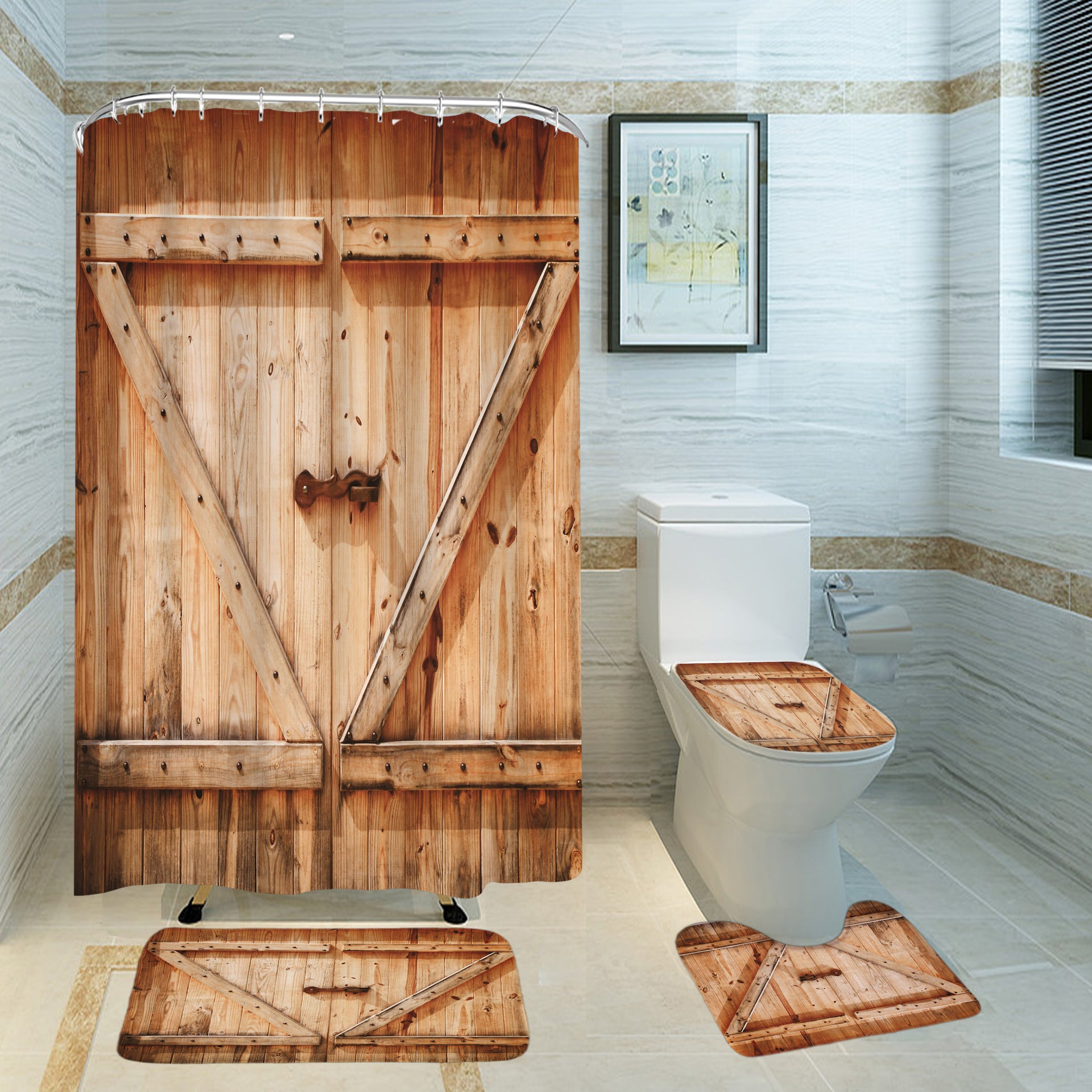 3D Shower Curtain Wooden door Pattern Bathroom Partition Curtain Set Durable Waterproof Mildew Proof Polyester